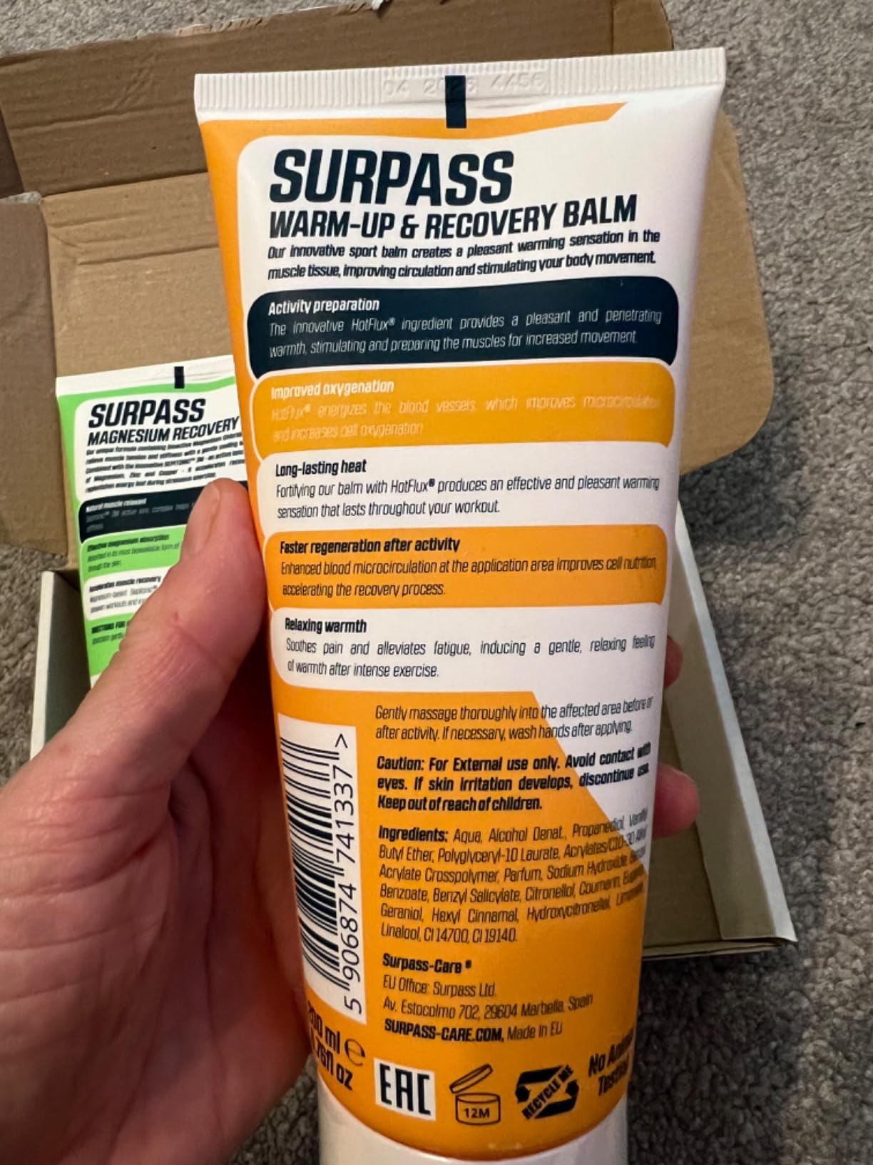 Our HotFlux Formula is completely free of chili extract and camphor, guaranteeing warmth without uncomfortable skin irritation, even on the coldest days. This all-season companion not only provides lasting warmth but also boosts vascular microcirculation, ensuring your muscles receive optimal oxygenation before even the hardest training. Unleash your peak performance with SURPASS – the ultimate choice for your workout journey!